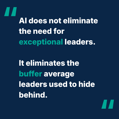 The current conversation is dominated by two camps. One says AI will take everyone's jobs and the future is bleak. The other says AI is just a tool and humans will always be needed. Both are wrong in the ways that matter to the people making hiring decisions right now. AI does not eliminate the need for exceptional leaders. It eliminates the buffer that average leaders used to hide behind: the layers of process, the large teams, the slow decision cycles that kept organisations running despite mediocre leadership at the top. What remains is a direct line between the quality of the leader and the performance of the organisation. In that environment, the difference between a good hire and a great one is not marginal. It is existential.